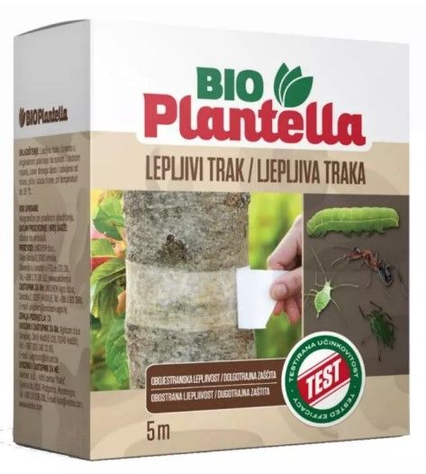 Banda adeziva cu doua fete este o metoda mecanica ecologica eficienta pentru pomii fructiferi. Latimea benzii - 5 cm - reprezinta o bariera naturala de nepatruns pentru omizile moliilor de iarna, afide, furnici si alti daunatori care se urca pe trunchi si provoaca pagube. Este extrem de rezistenta si nu dauneaza plantelor.