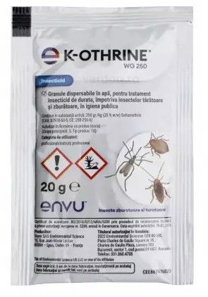 Doza: 20 g K-Othrine WG 250/ 9-10 litri apa/ 200-250 m²