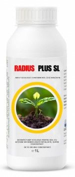 Compoziție – consorțiu de compuși biodinamici activi (100% naturali): RADIUS Plus SL conține un consorțiu complex de compuși biodinamici activi de origine naturală, incluzând acizi organici naturali, fracțiuni organice fermentate, derivați ai carbonului organic stabil, compuși biodinamici cu rol de interfață biofizică, componente coloidale organice, esteri și alcooli organici de origine vegetală, terpenoide naturale nevolatile, polifenoli vegetali și alte componente rezultate din procese naturale de transformare biologică, cu capacitate de integrare în matricea solului.